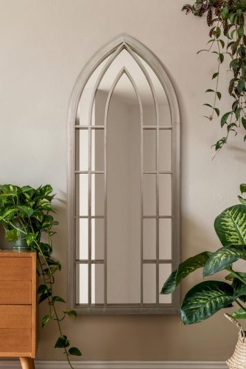 The Somerley - Rustic Metal Chapel Arched Decorative Wall or Leaner Mirror Stone Colour 44" X 24" (111CM X 61CM)